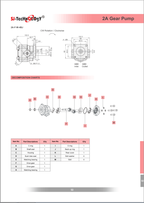 因此,我們的產(chǎn)品可以在繁重的操作條件下工作并傳輸高液壓動力。此外,SJ-TECHNOLOGY齒輪泵具有良好的液壓,機械和容積效率,低噪音杠桿以及緊湊的尺寸。